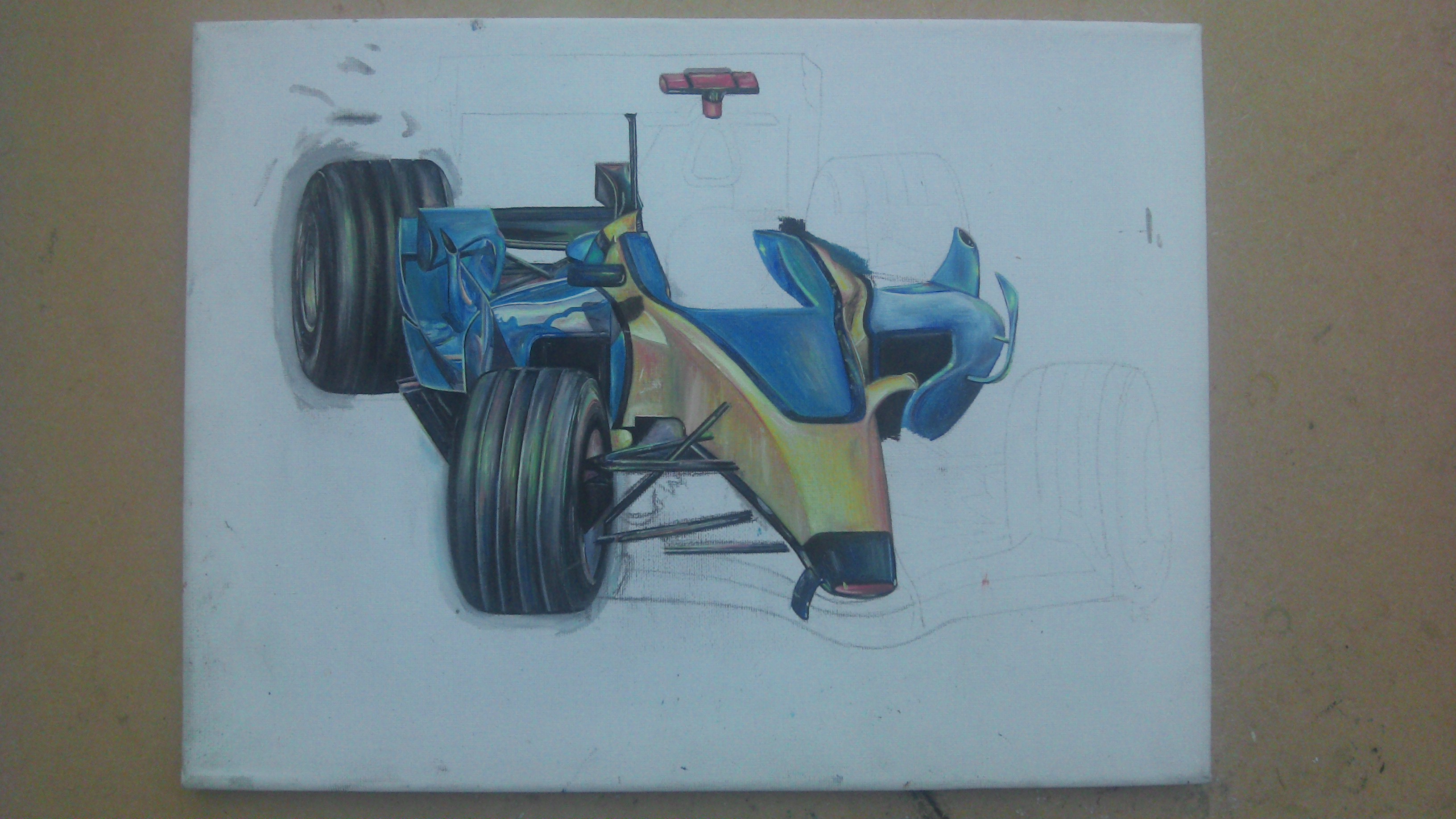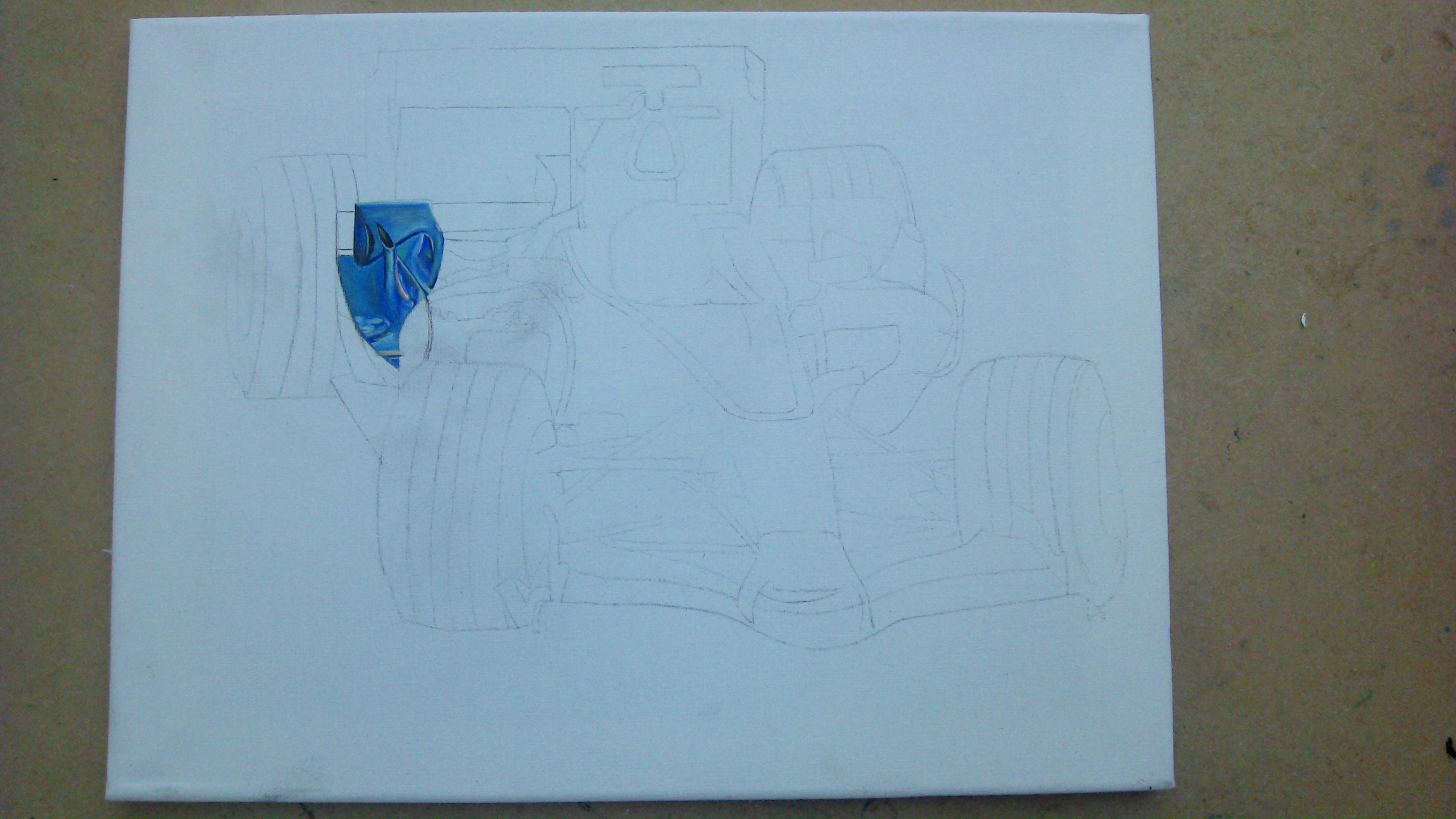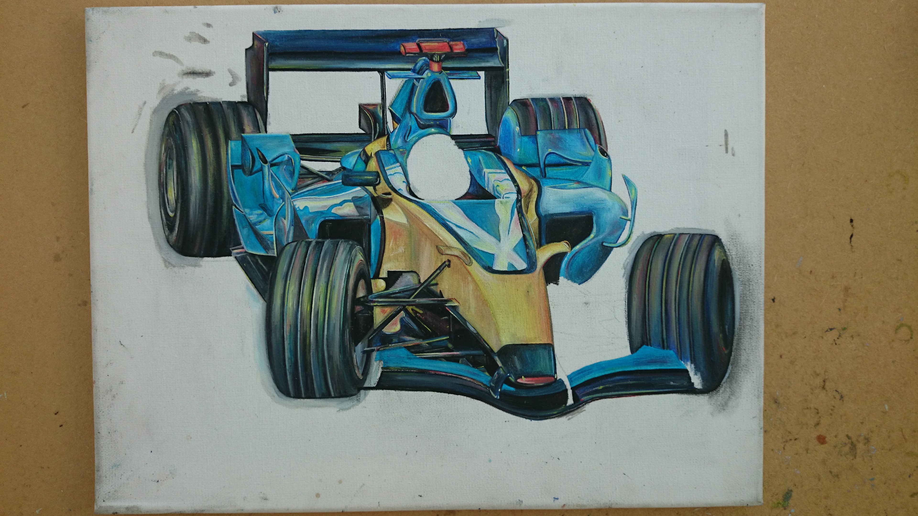 Another quick update regarding the Fernando Alonso painting. I have managed to add a few more details to the body work and am now starting to add the front wing and area around the suspension on the front left of the car. I am aiming to be able to put some more details on over the weekend once the image has dried.