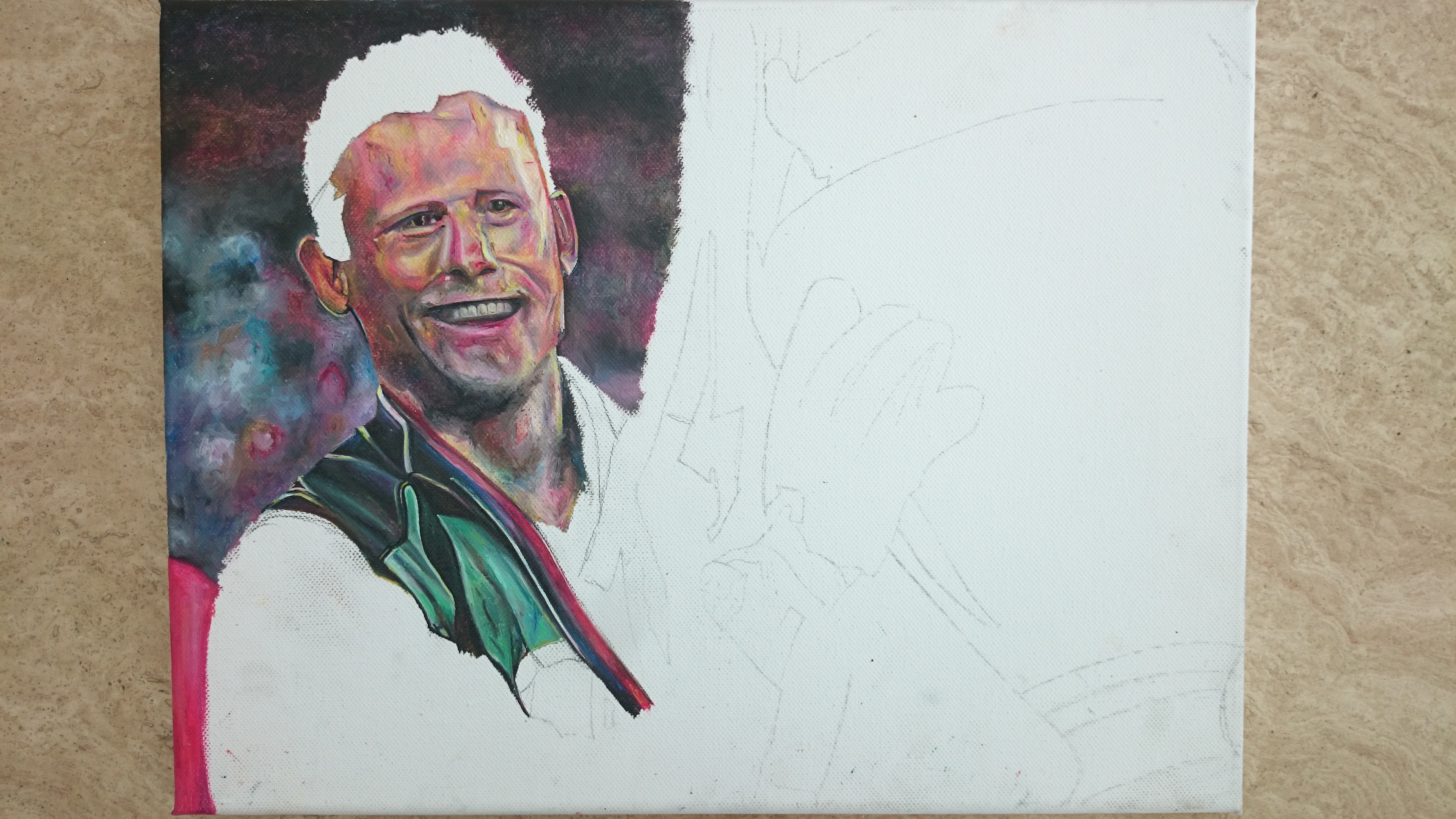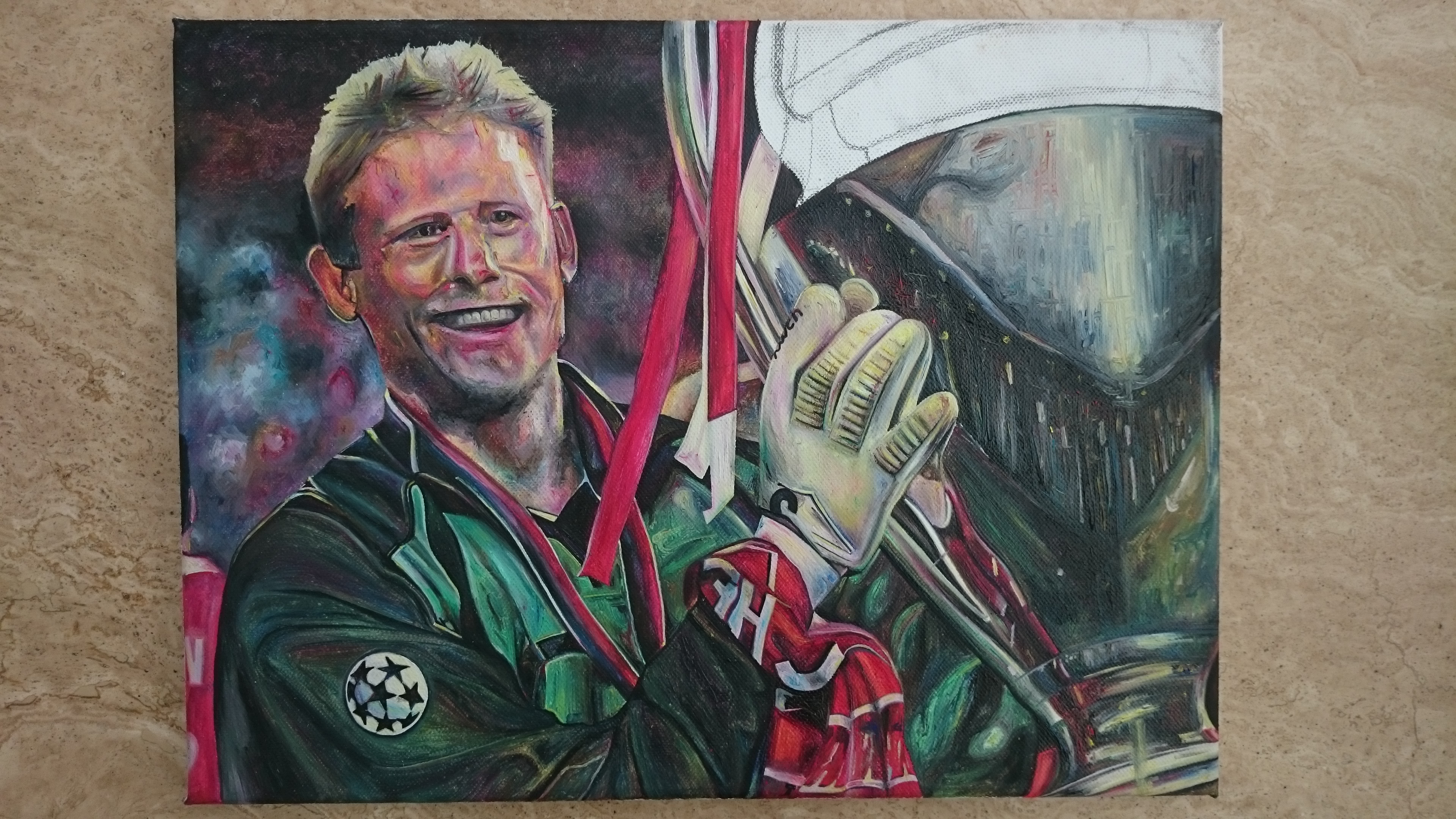 I painted this for my friend as a surprise wedding present, I think its fair to say he wasn’t quite expecting it! As a massive Manchester United fan he grew up idolising one of Uniteds best keepers of all time, just a shame my mate can’t quite emulate Peter Schmeichels success when he plays in nets!