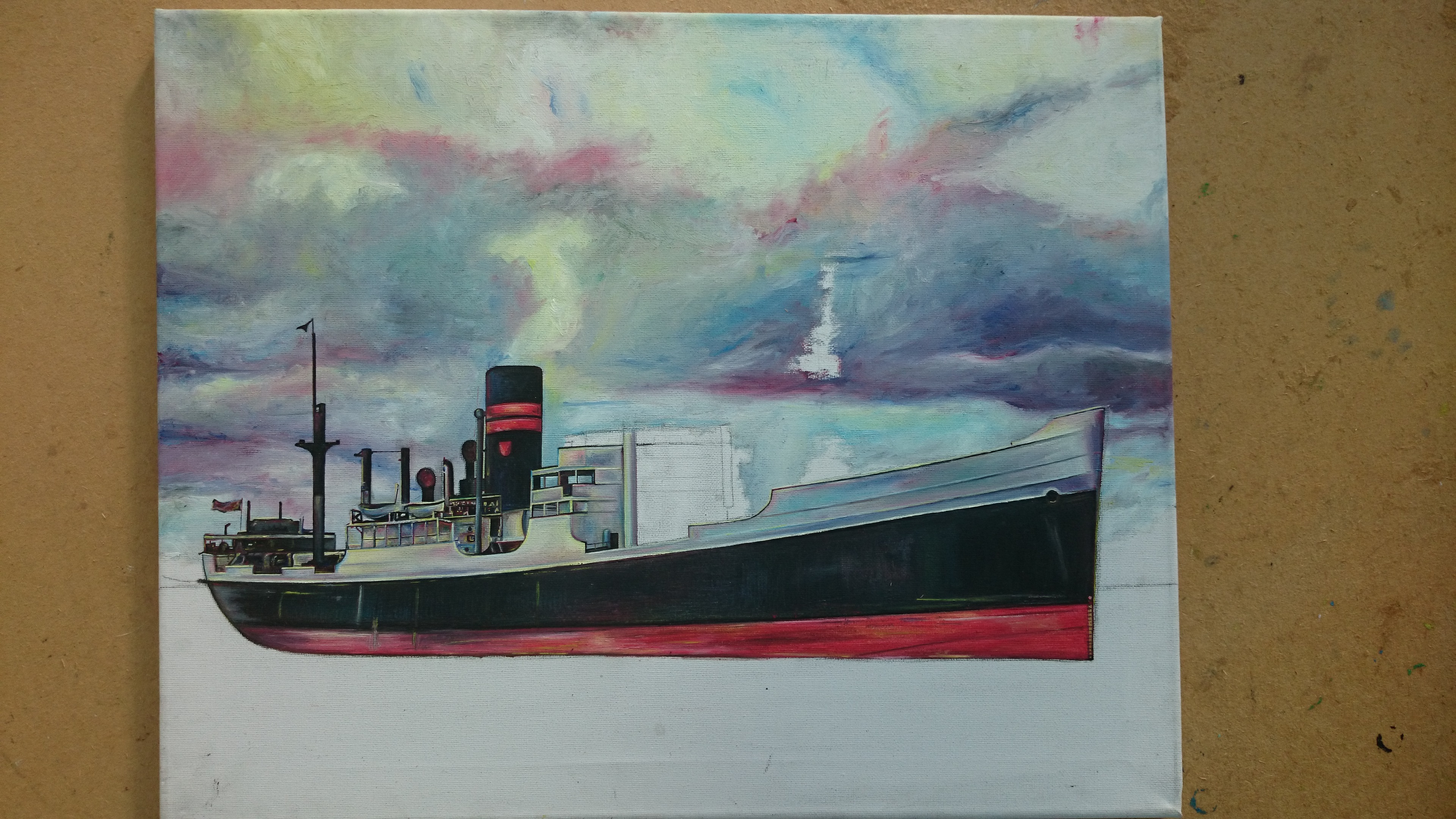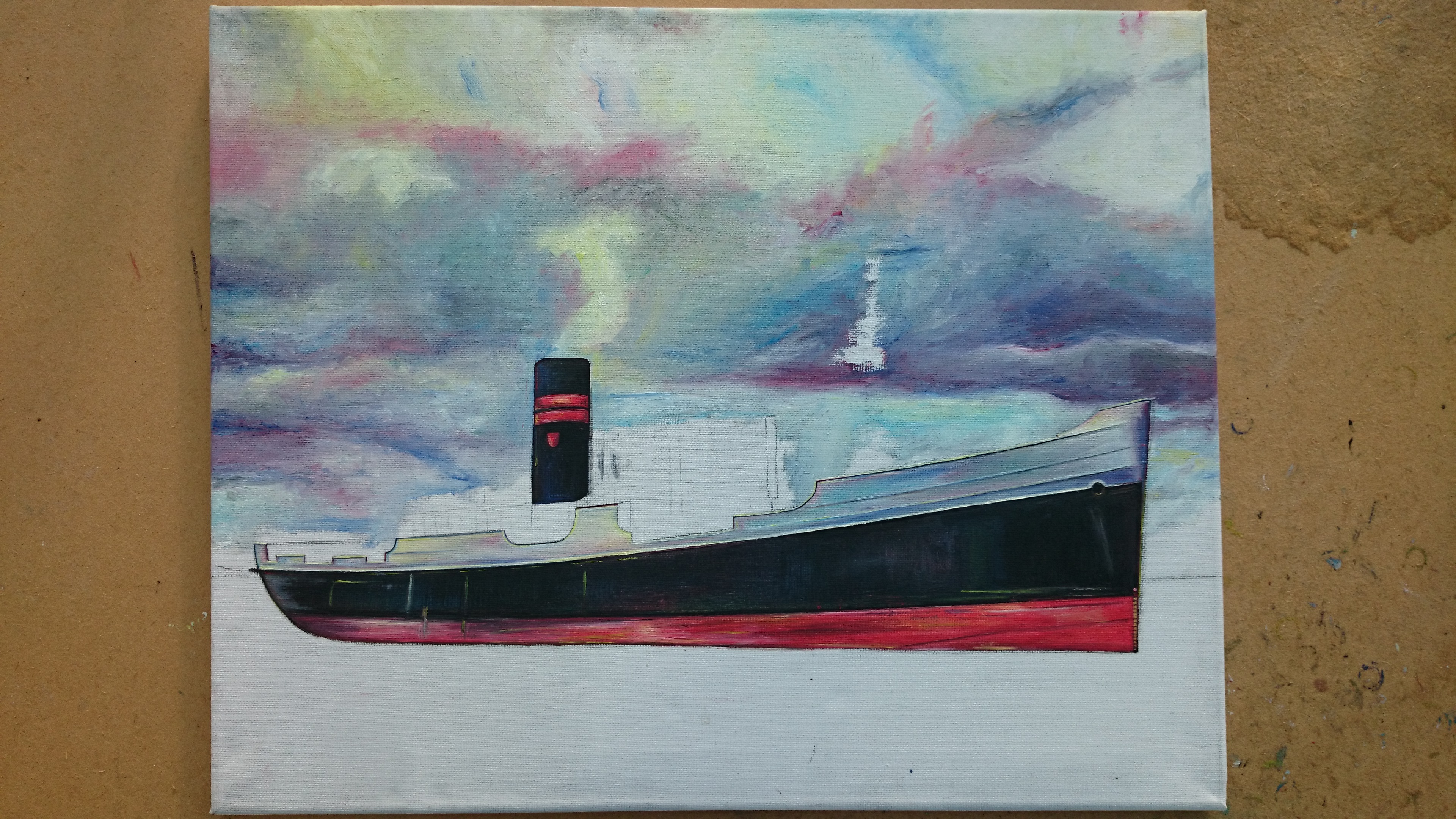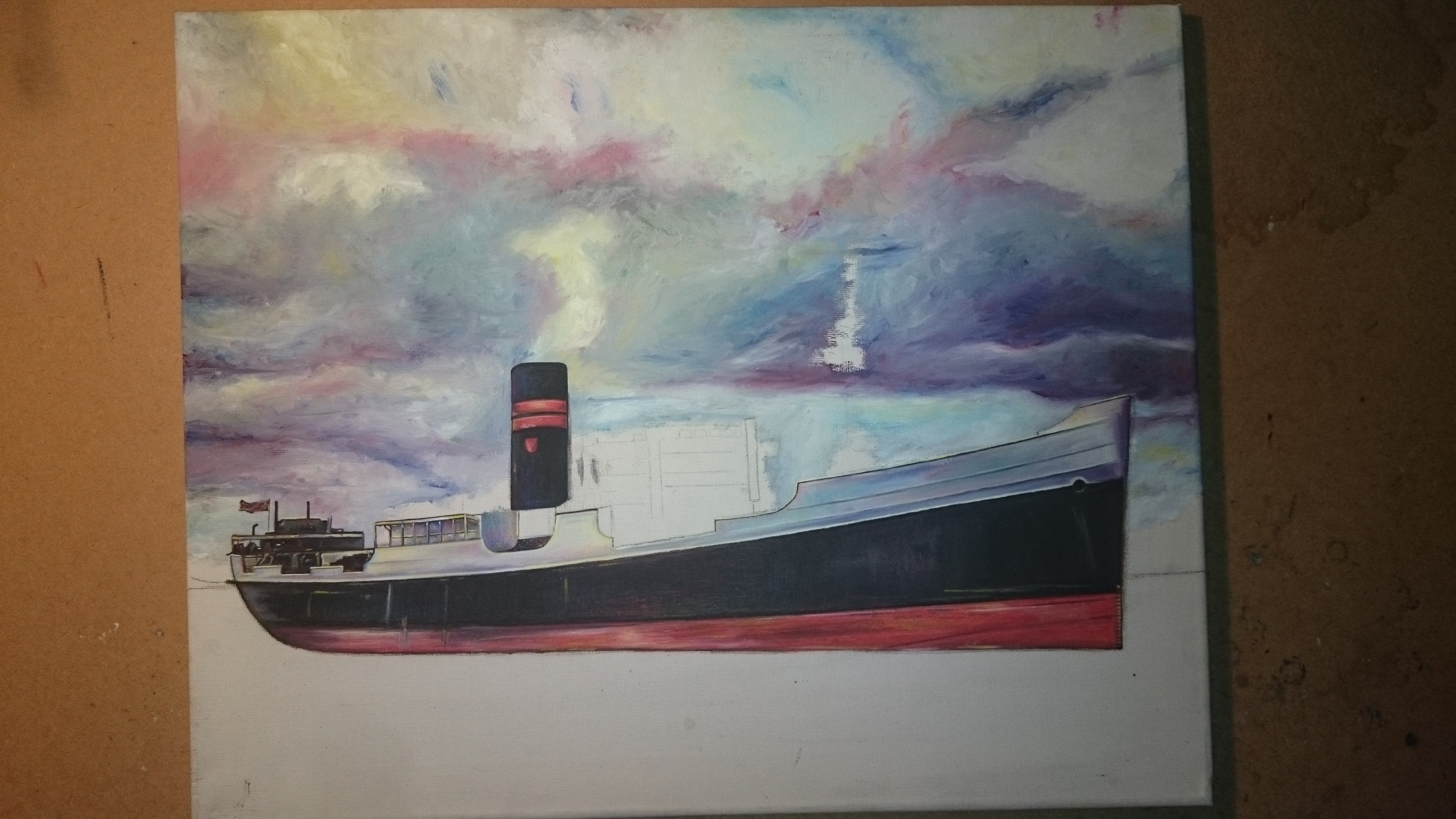 The painting is been created on an A2 Canvas and is again been painted with Oil Paint. The deadline for the project is the end of June and due to its size, details and complexity (especially on the upper deck) I thought it would be important to start it early.