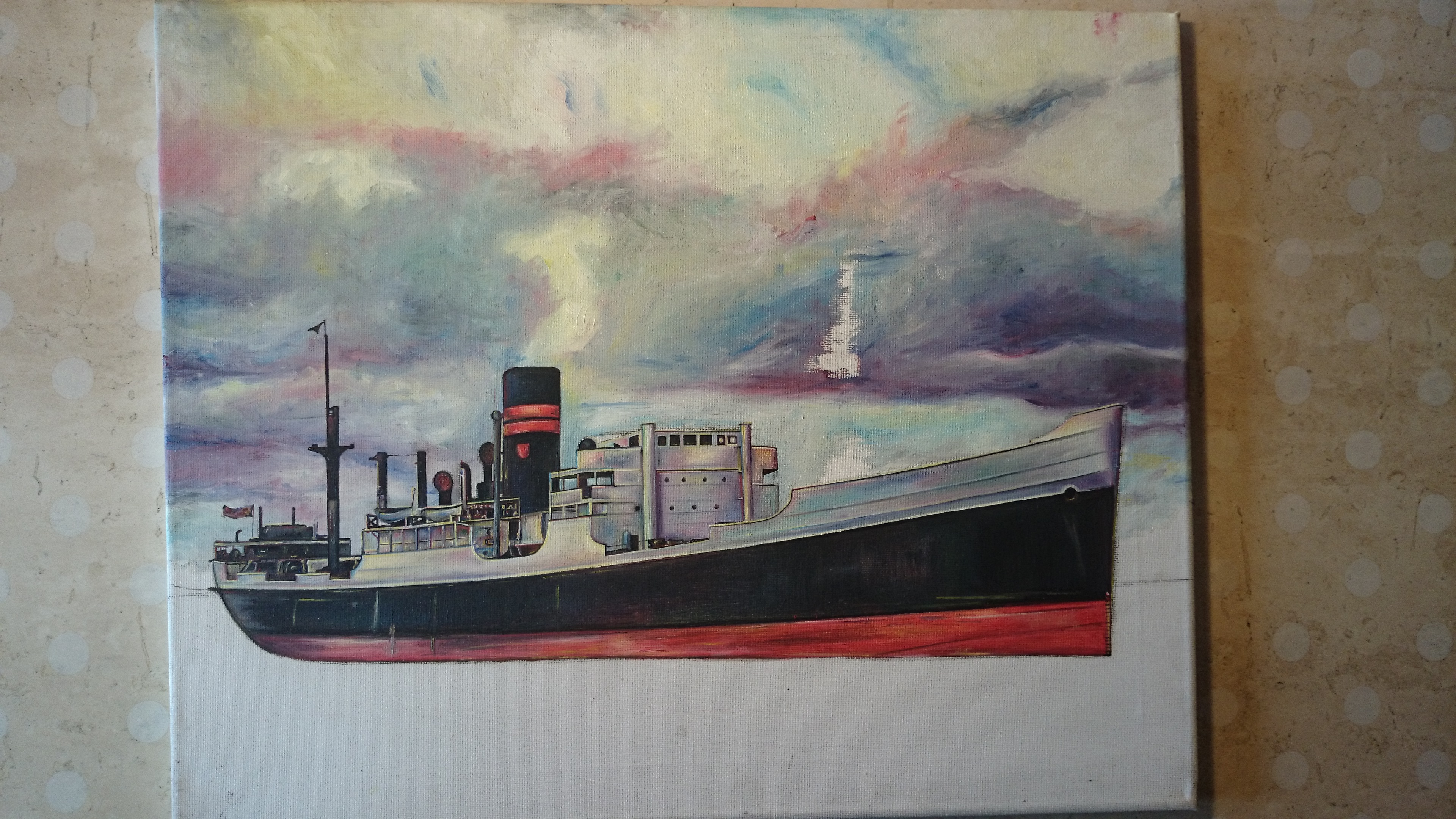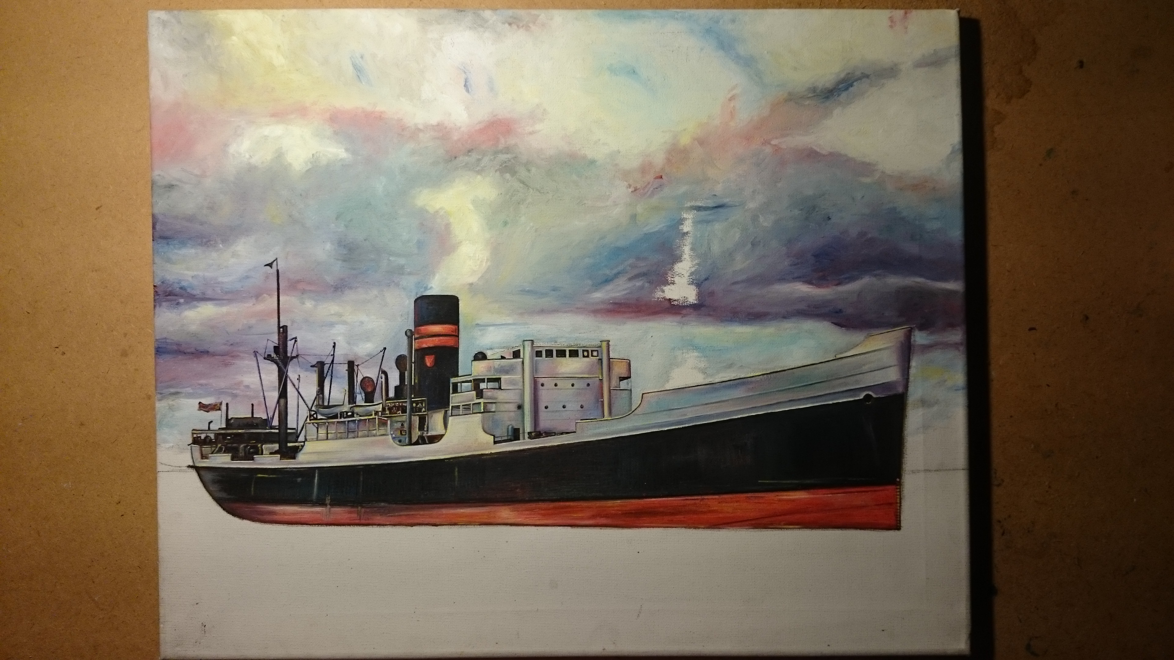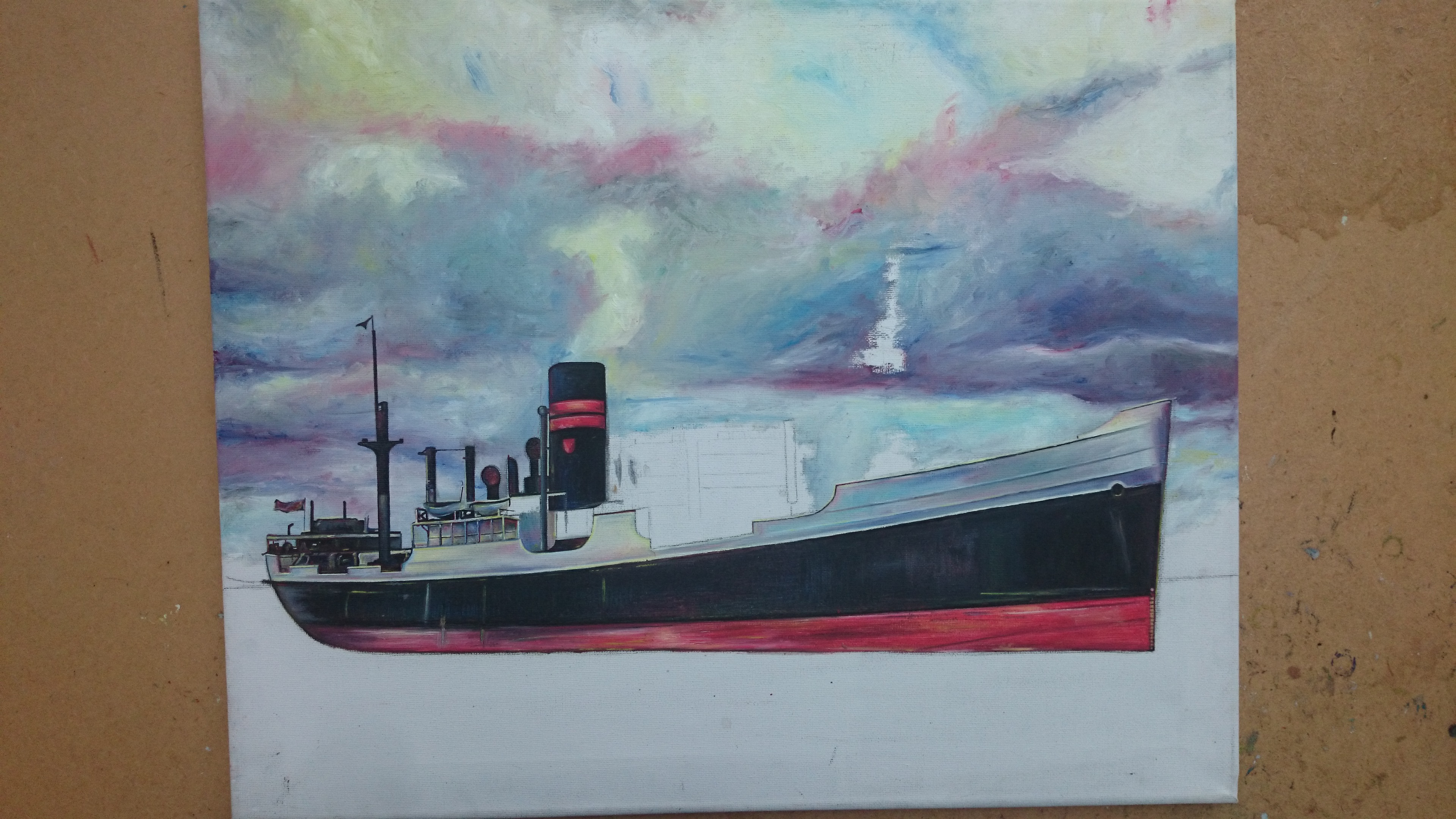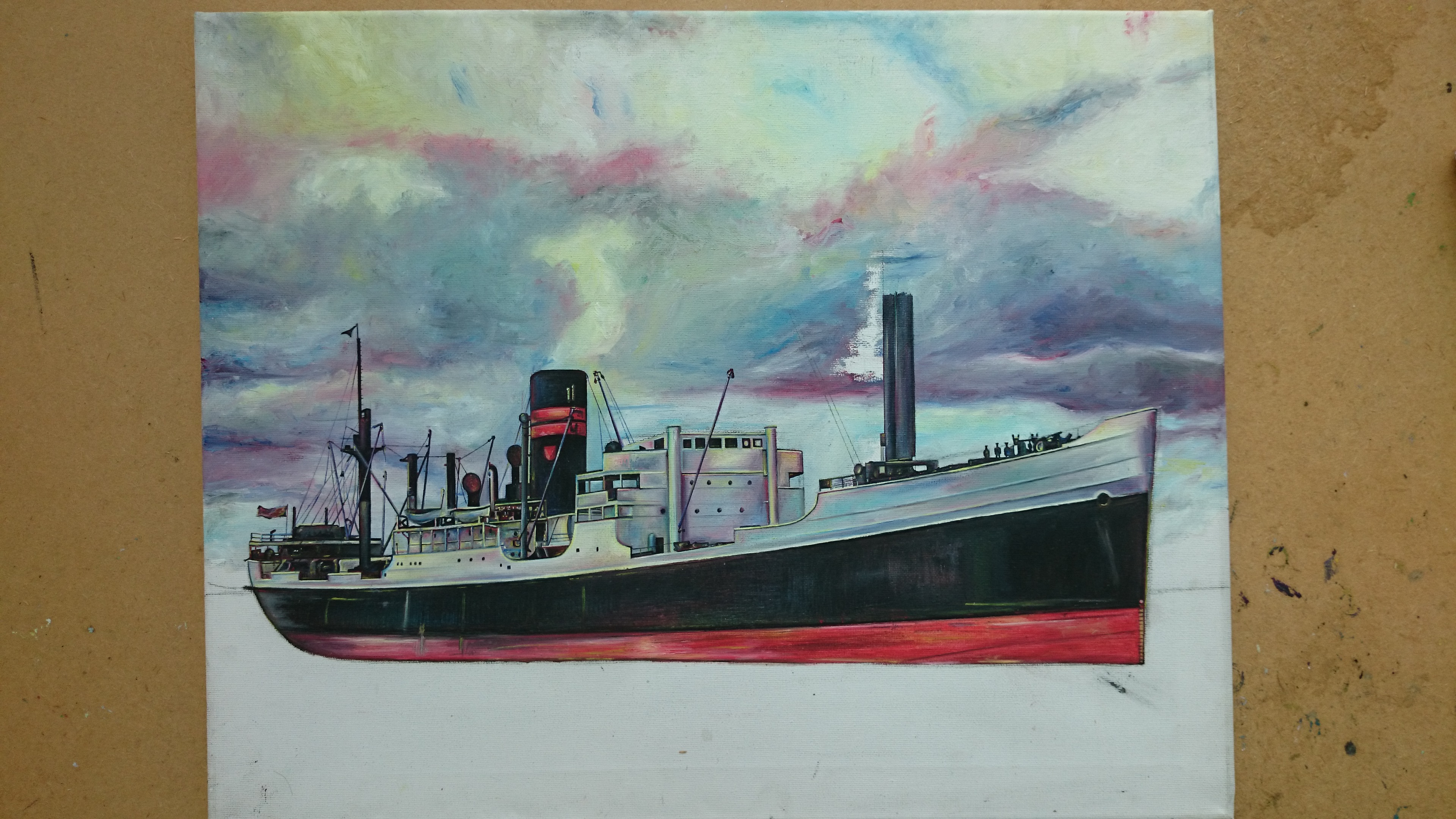 The painting is been created on an A2 Canvas and is again been painted with Oil Paint. The deadline for the project is the end of June and due to its size, details and complexity (especially on the upper deck) I thought it would be important to start it early.