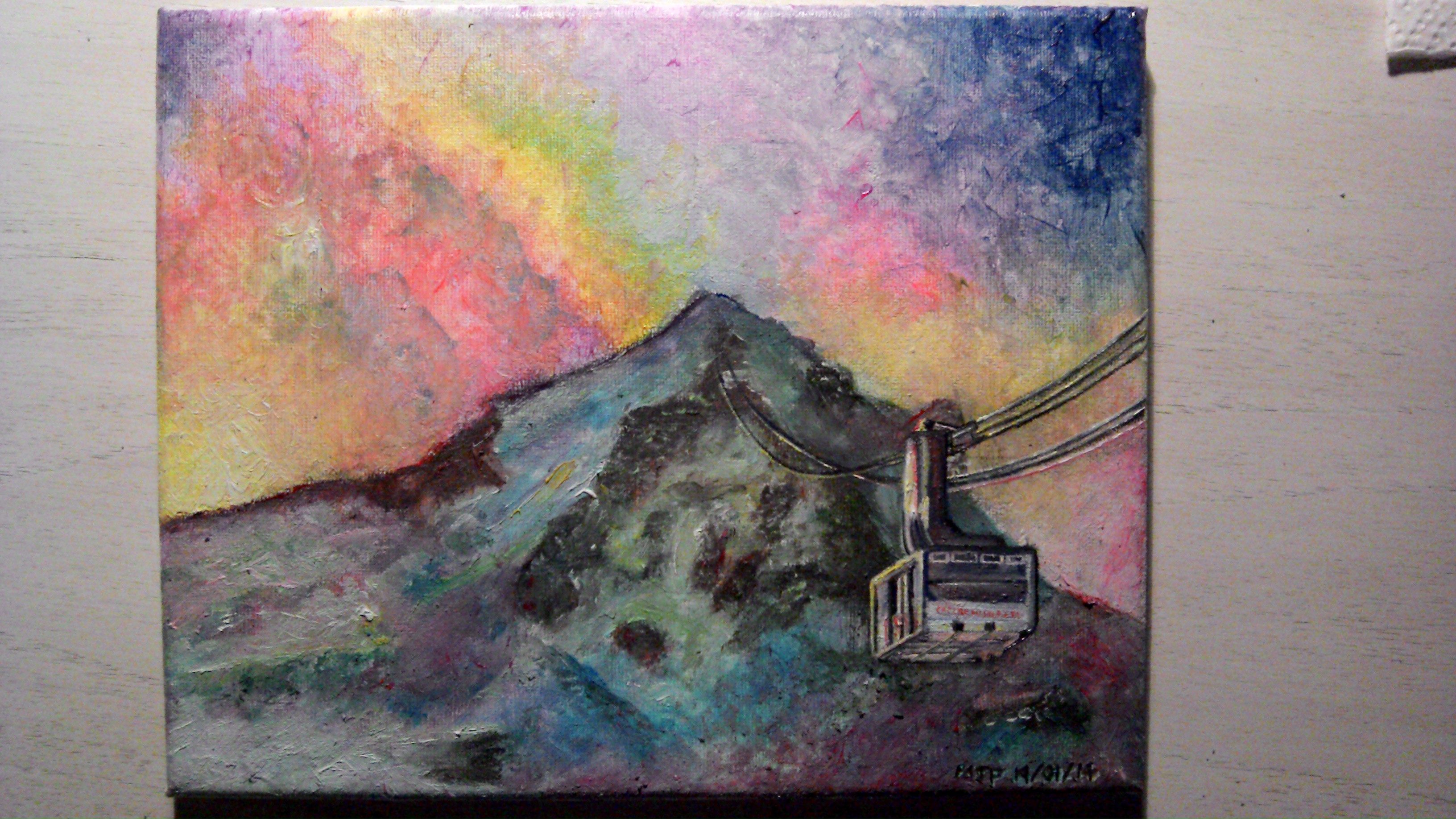 Another view of Tignes, this time though of Tignes – Le – Lac from the direction of Val Claret on a still cold winters evening (before the snow came!) Really happy with this one considering it was done in a very short amount of time, again using charcoal, chalk, pencil, hardboard and hairspray!