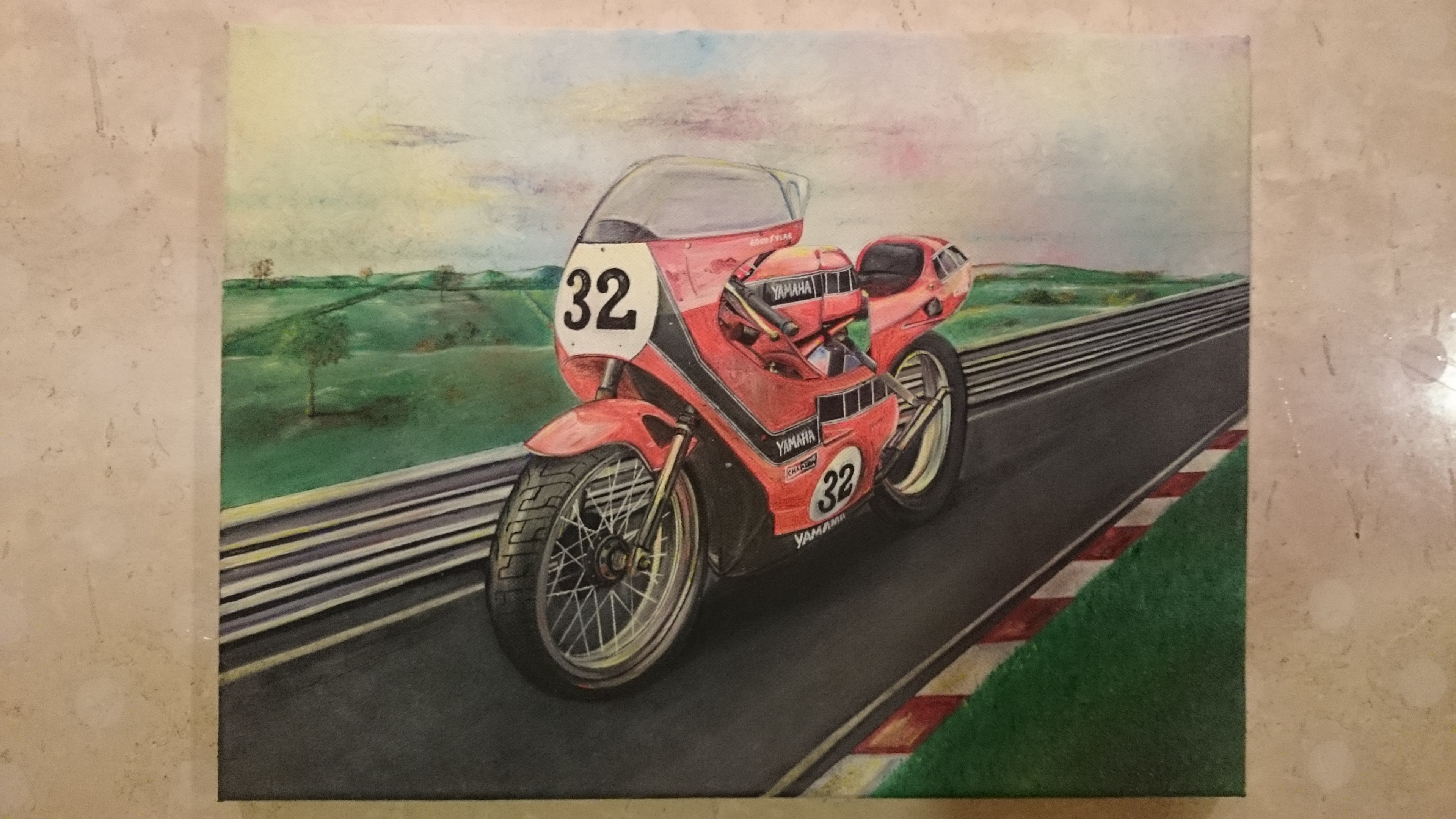 I have managed to finish the painting of the Yamaha TZ250 for my client, the last few details where added such as the chain and spokes on the back wheel along with a few minor amendments and it is now drying ready for delivery on Tuesday. I am also hoping to add a high quality scan of the image onto the website on Tuesday too so please keep checking back for updates. With the bike completed I will now make a start on the paintings of Lewis Hamilton and Mika Hakkinen.