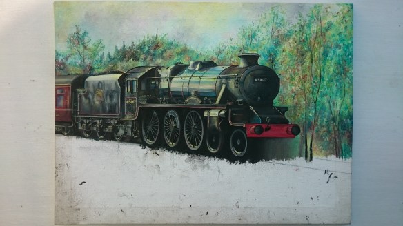 After 14 months of work (at weekends and after work on Wednesday evenings) I can now finally show you the final painting of the “Lancashire Fusilier” on the Buxton Spa Express. It has been painted on a A3 canvas with oil paints and mostly using a 0004 brush! My favourite parts are the details around the tender and main driving pistons which unsurprisingly took the longest part to paint. The painting will also be entered into the Derbyshire Open Art Competition at Buxton Museum and Art Gallery, I would love for the painting to go on display but obviously that is up for the judges to decide. The first image below is the original “untouched” picture followed by a few others using various filters. Over the next few months I am aiming to finish my painting of Lewis Hamilton before moving onto my summer holiday project of Concorde.